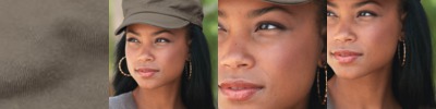 Cotton/polyester blend Chambray is a nice touch on this flat-billed cap.