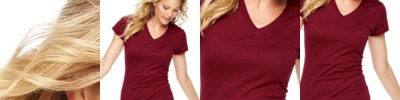 The tee takes a turn toward feminine with a flattering fit and V-neckline.