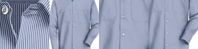 - Three woodtone buttons on a clean-finished placket with a reinforced box